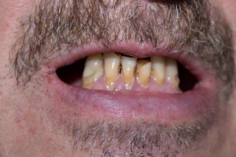 Полное отсутствие зубов на верхней и частичное на нижней челюсти. Неудовлетворительная эстетика оставшихся зубов. Эмоциональный дискомфорт из-за отсутствия зубов.