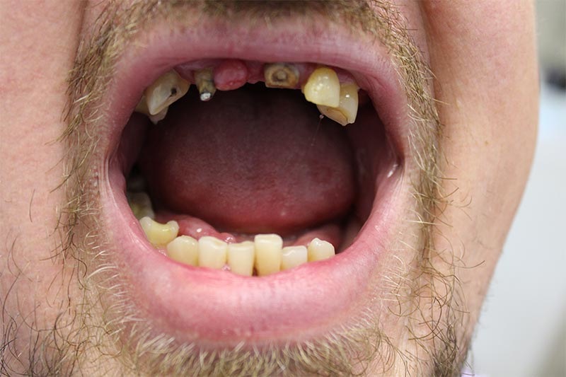 Пациент из Эстонии обратился с жалобами на оставшиеся зубы. Их внешний вид вызывал дискомфорт и затруднял его жизнь в обществе.