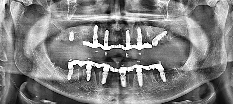 Хирургический этап занял чуть более 2.5 часов. Были удалены остатки зубов и вживлены импланты. Ортопедический этап потребовал 3 визита и 6 часов.