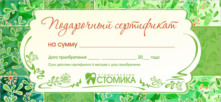 Подарочные сертификаты от стоматологии Стомика