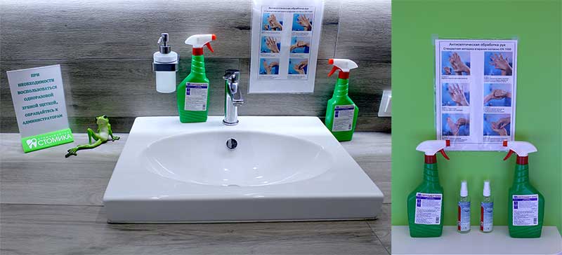 Все поверхности клиники с особой тщательностью регулярно обрабатываются специализированными дезинфицирующими средствами. Начиная от входной двери и заканчивая самыми дальними уголками помещений. Никаким вирусам, микробам или бактериям не выжить в таких условиях.